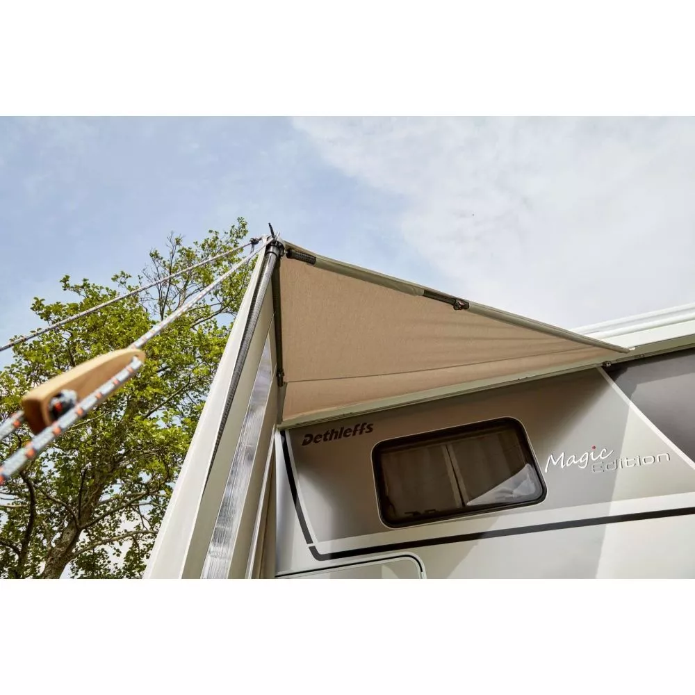 Der Isabella Levo Cosy Corner – ein flexibler Schattenspender, der einfach in die untere Kederleiste der Markise eingezogen wird. Er kann flexibel als Schattenspender, Windschutz oder als Sichtschutz bei einer gemütlichen Pause genutzt werden. Ziehe den Isabella Levo in die untere Kederleiste wie es für dich richtig ist, nun das leichte CarbonX-Gestänge einziehen und fertig ist dein Stück Privatsphäre. Um noch mehr Windschutz zu erhalten kannst du optional den Isabella Levo Windschutz dazukaufen, der flexibel zum Cosy Corner kombiniert werden kann.