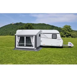 Das Wohnwagenvorzelt Hahn Zelte Hof ist Ihr idealer Begleiter in den Wintermonaten. In 4 verschiedenen Grössen erhältlich, bietet dieses Zelt einen geschützten Bereich vor Ihrem Fahrzeug um Ihr Equipment unterzubringen. Mit Eingängen in beiden Seitenwänden und einer komplett herausnehmbaren und zur Veranda (mit optionalen Verandastangen) abklappbaren Vorderwand hält dieses Zelt aufgrund des strapazierfähigen Materials den Umwelteinflüssen stand.