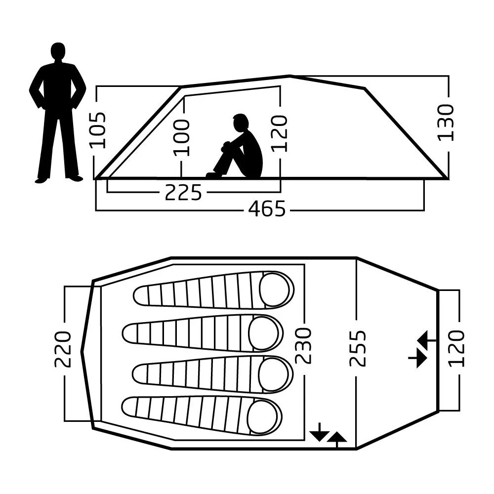 Dank 4 verschiedener Öffnungsmöglichkeiten für die Vorderseite kannst du dich jeder Wetterlage flexibel anpassen und den Zelteingang nach deinen persönlichen Vorlieben einrichten. Die hochwertigen Spann- und Belüftungssysteme mit Moskitonetz sorgen während dem Aufenthalt im Zeltinneren für ein angenehmes und Insektenfreies Raumklima. In Verbindung mit der passenden, optional erhältlichen Zeltunterlage kann der Vorraum auch als zusätzlicher Wohnbereich genutzt werden. Praktische Staufächer und Aufhängemöglichkeiten runden den Komfort dieses Zelts ab.