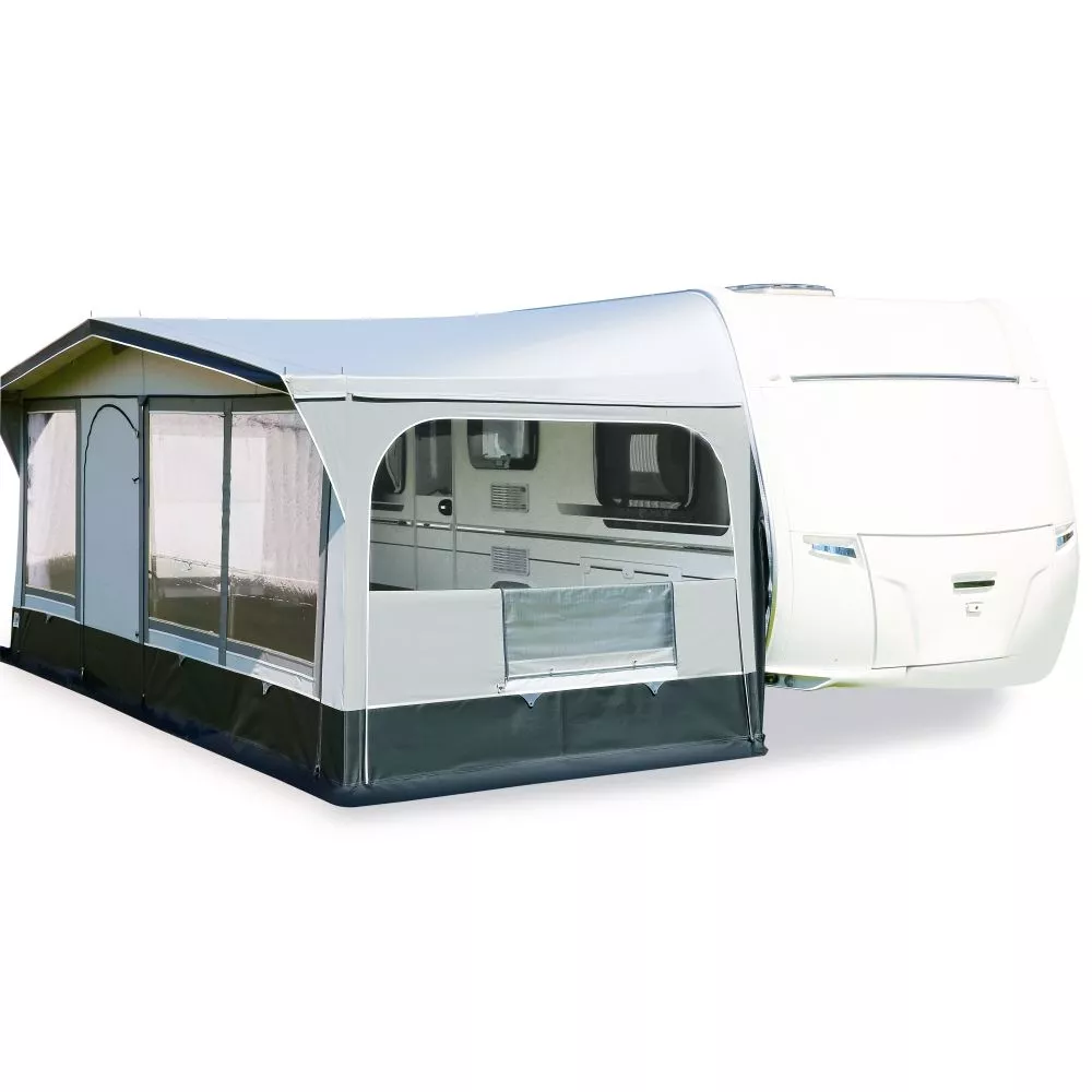 Das schlichte Caravan-Vorzelt bietet alles, was für den Alltag auf dem Campingplatz benötigt wird. Flexible Aufbaumöglichkeiten lassen einen wundervollen Campingurlaub bei jedem Wetter zu. Fünf Zeltteile bestehend aus dem Dach, zwei Vorder- und zwei Seitenwandelementen, sowie das 28 mm Stahlgestänge sorgen für leichten Auf- und Abbauen.
